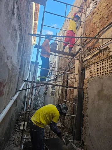 Além disso, também foram realizados serviços de recuperação de vigas, reforçando partes comprometidas da estrutura. Esse tipo de obra, embora muitas vezes não seja visível após a conclusão, é considerado um dos trabalhos mais importantes dentro de qualquer processo de reforma predial.
