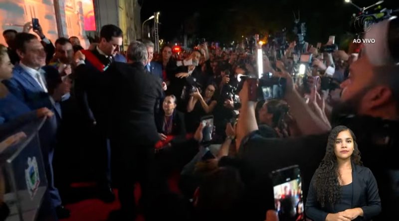 Ex-governador João Azevêdo passa faixa para novo governador Lucas Ribeiro (imagem: reprodução TV Assembleia)