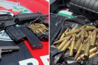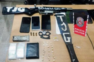 Policiais militares apreenderam um rifle, munições e drogas dentro da sede de
